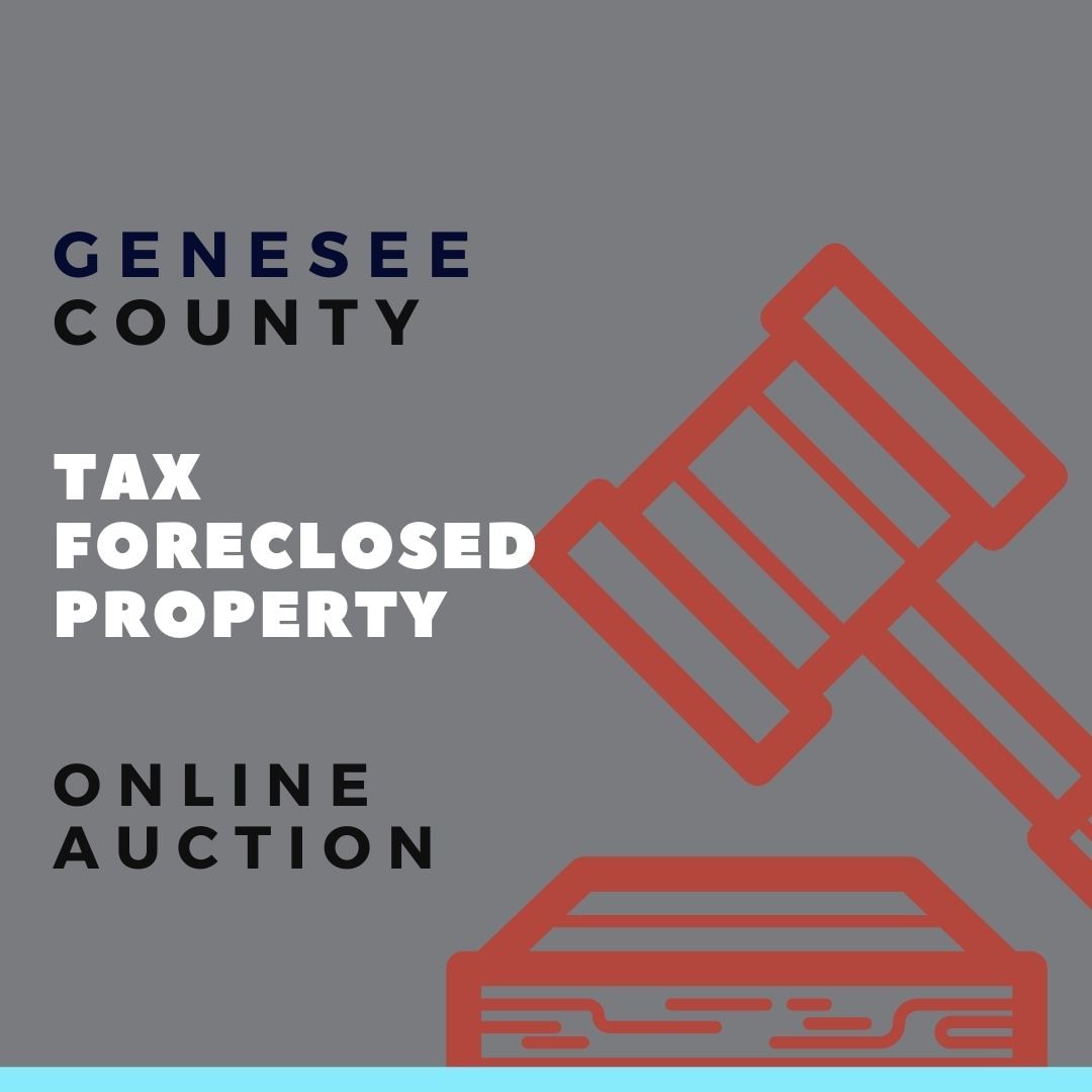 Genesee County will sell at Public Online Auction 9 parcels of real estate which have been conveyed to the County by final judgment under tax foreclosure proceedings. This sale is ordered by the Genesee County Legislature and is in accordance with the appropriate provisions of the Real Property Tax Law.